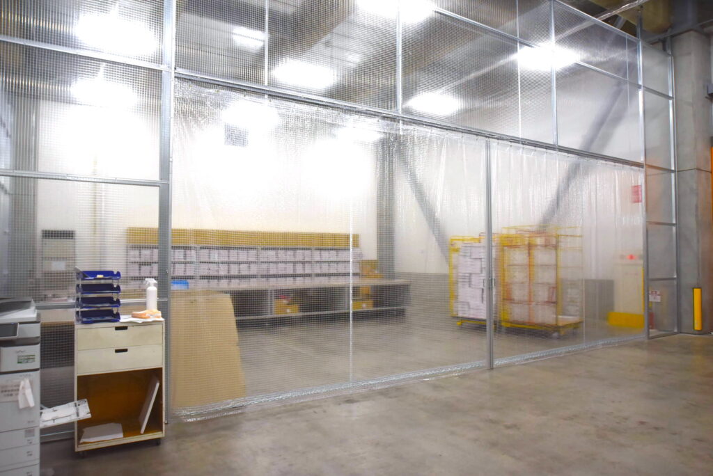 食品関連もスナック菓子、ナッツ類、グミ、コーヒー豆からサプリメントまで多種多彩。防塵対策や温度維持のために、ビニールカーテンを設置しているエリアもあります。