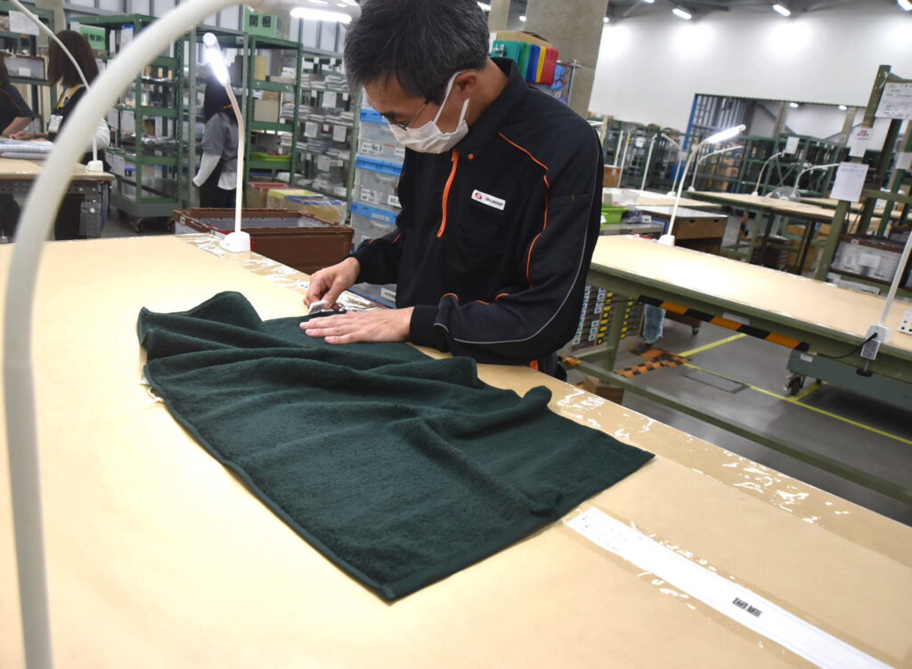(手で縫い目を触りながら確認する)
